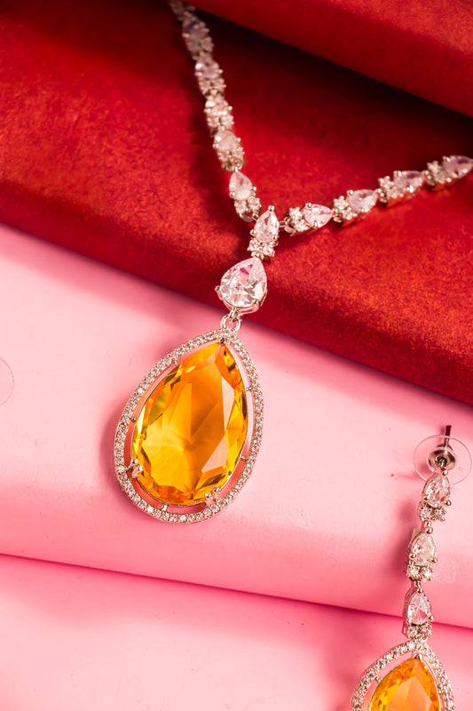 Yellow Sapphire Crown Necklace Set