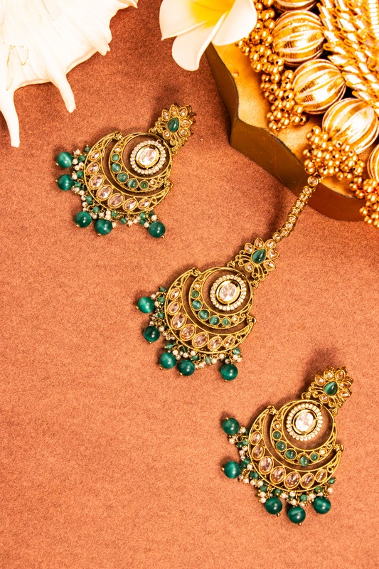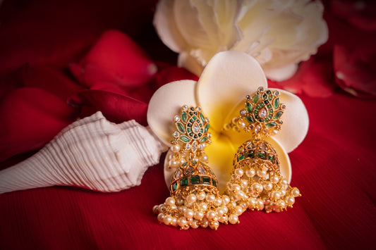 Vivid Padmavati Green Kundan Earrings