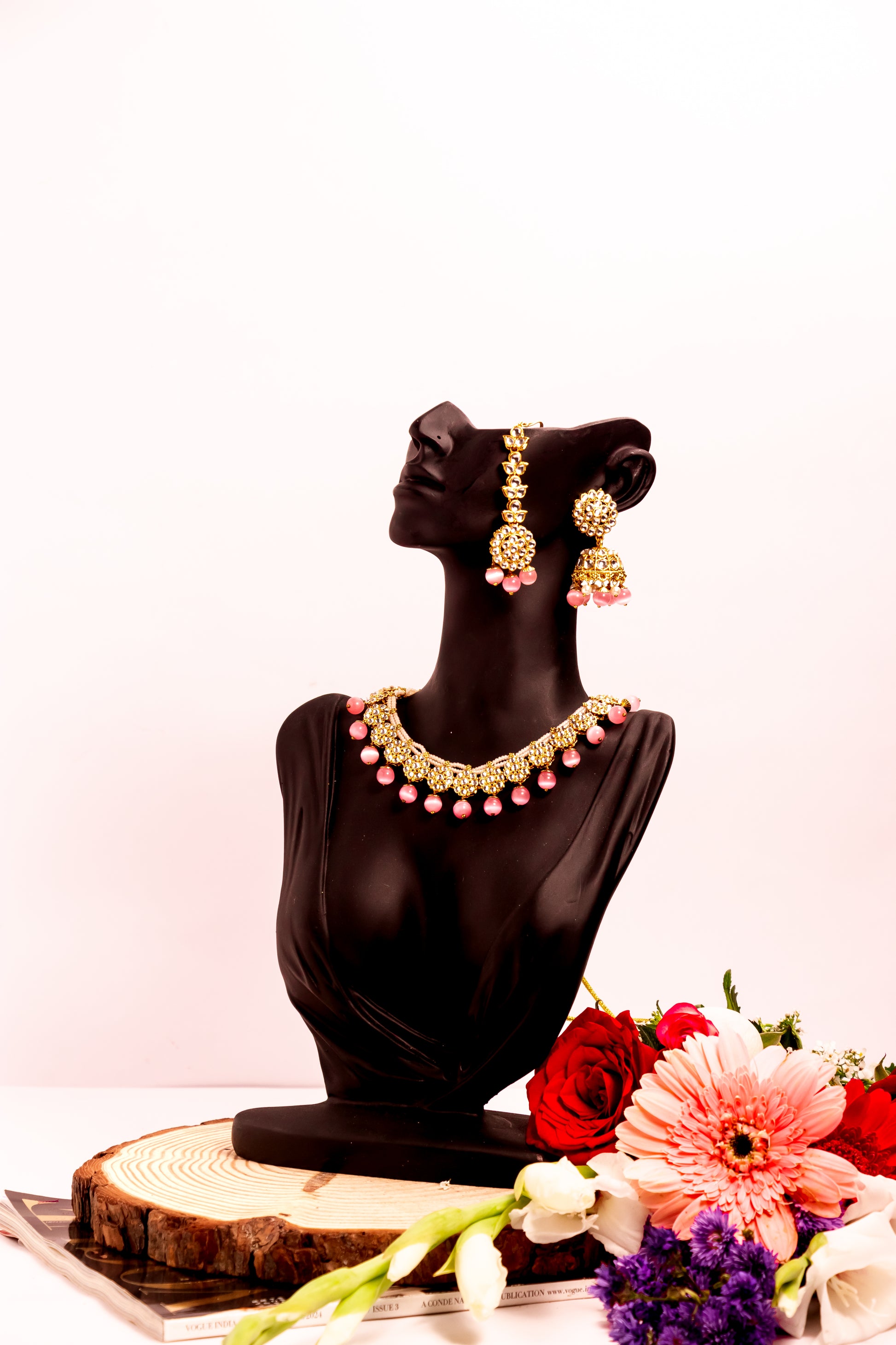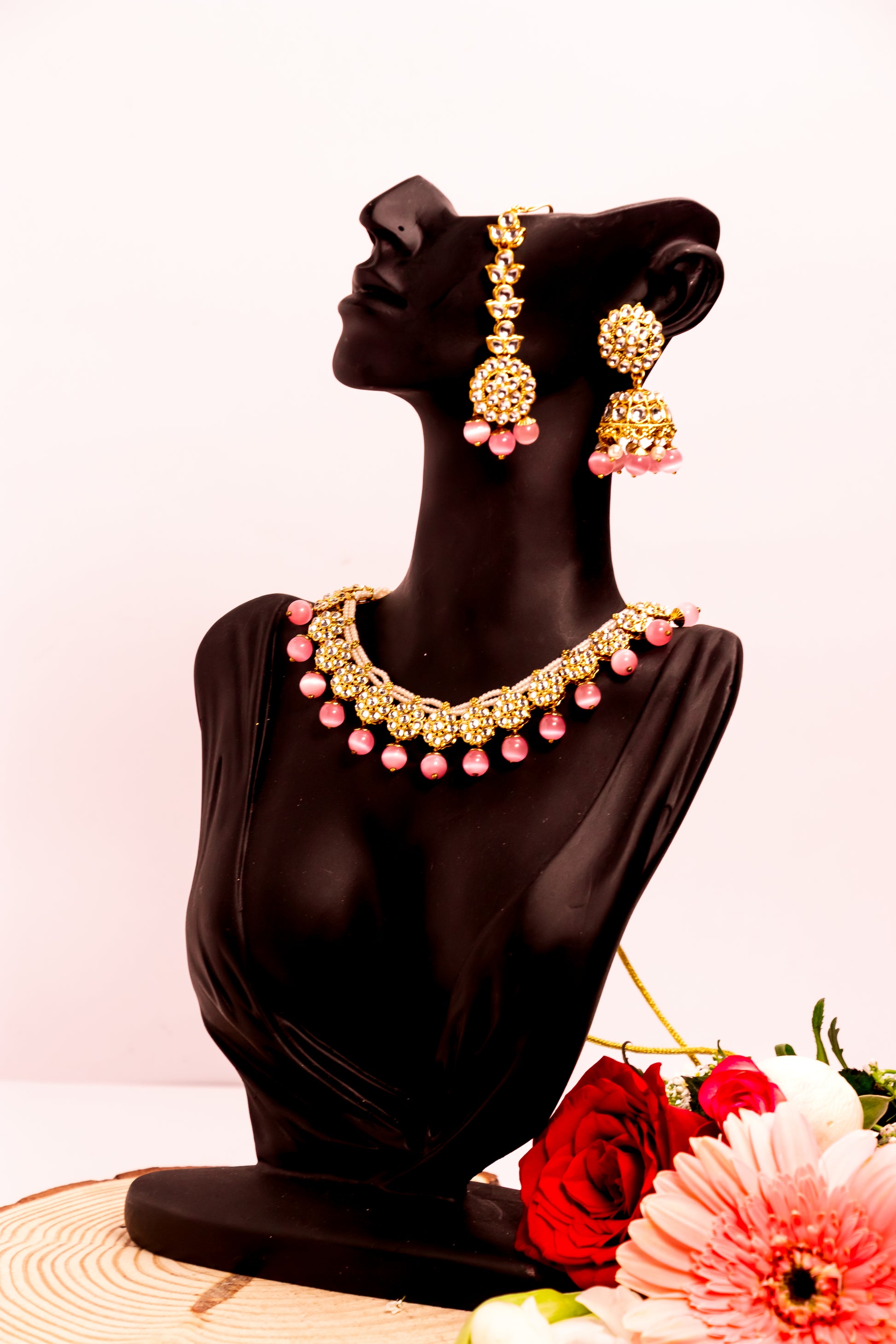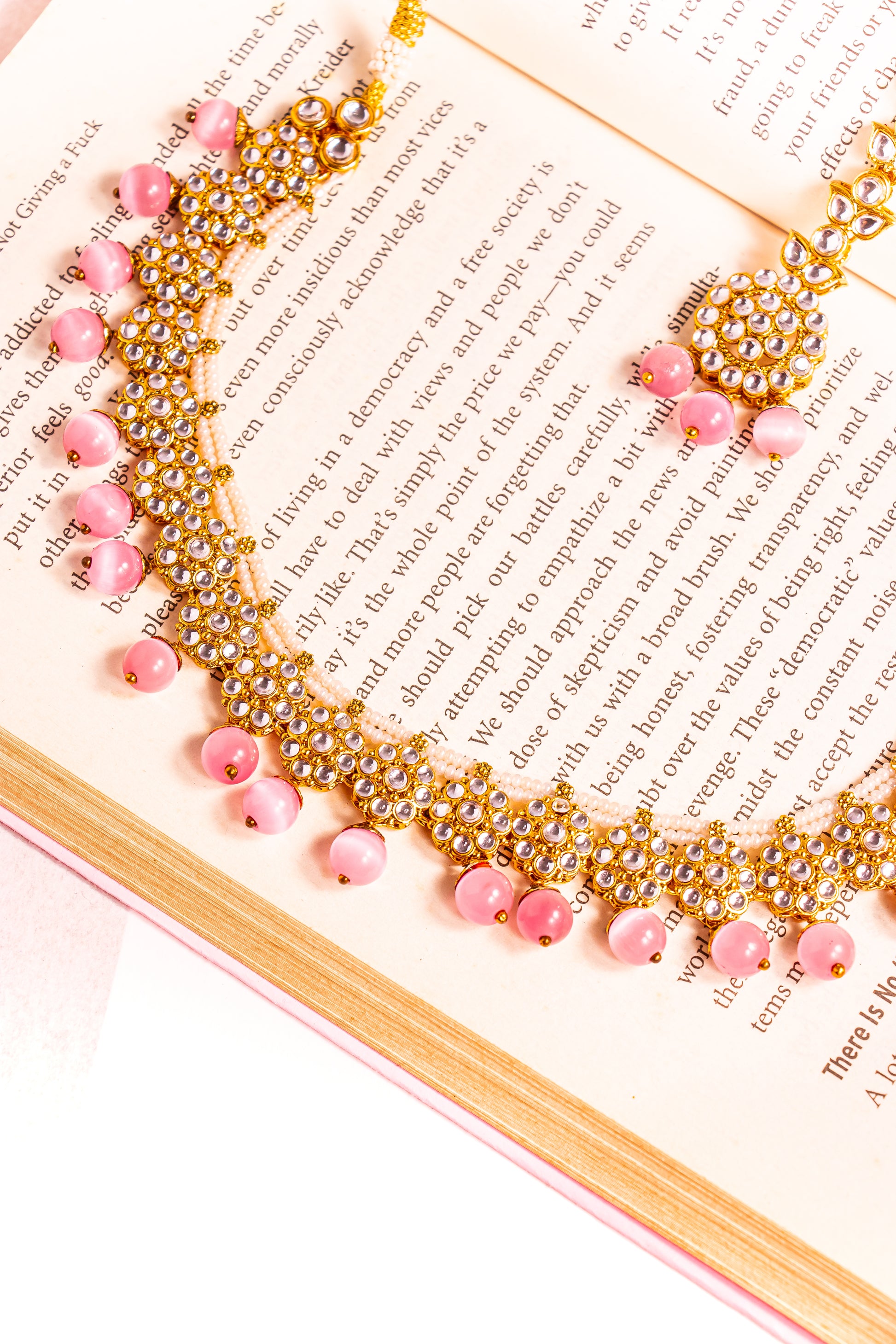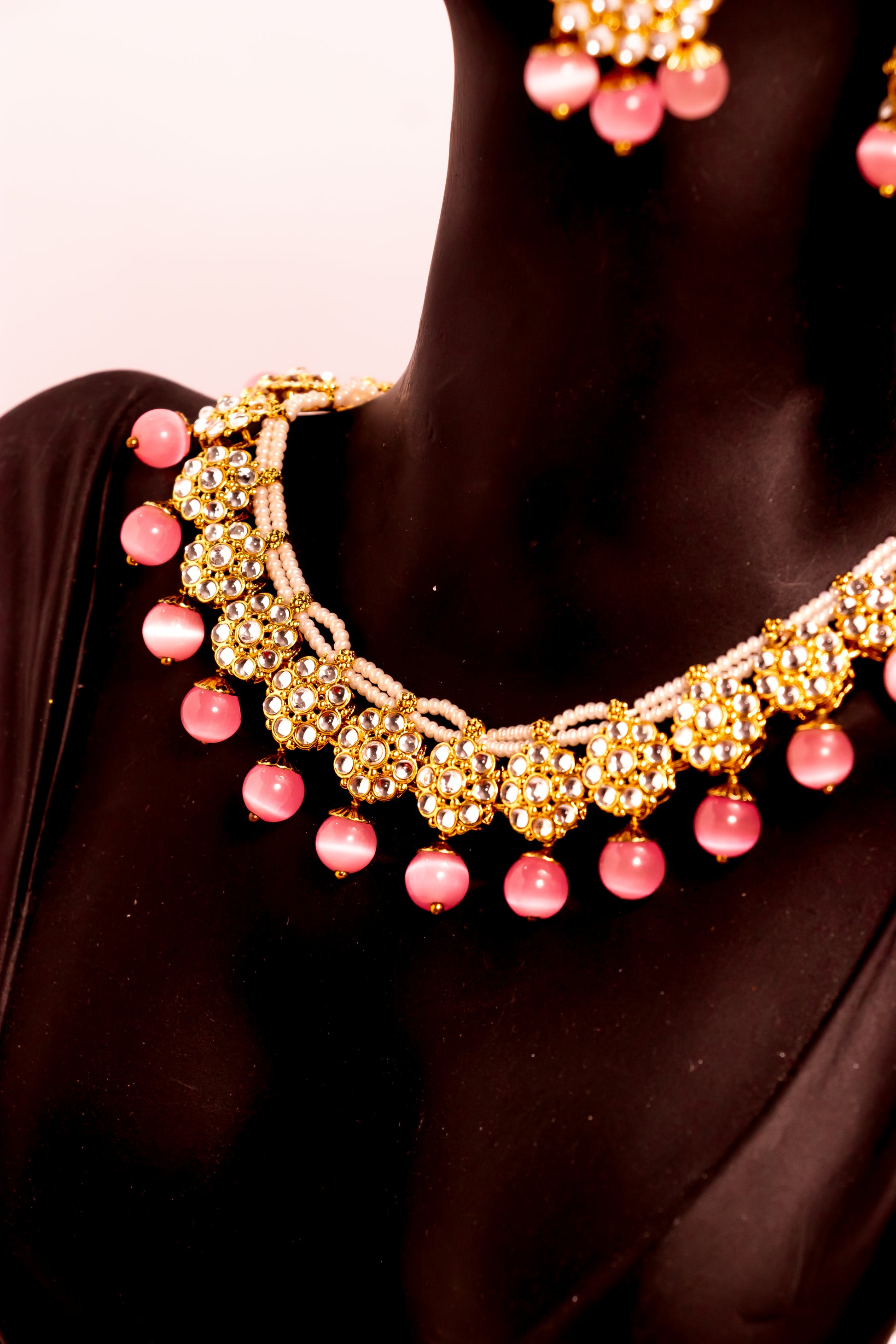Jahan's Glow Pink Kundan Necklace Set