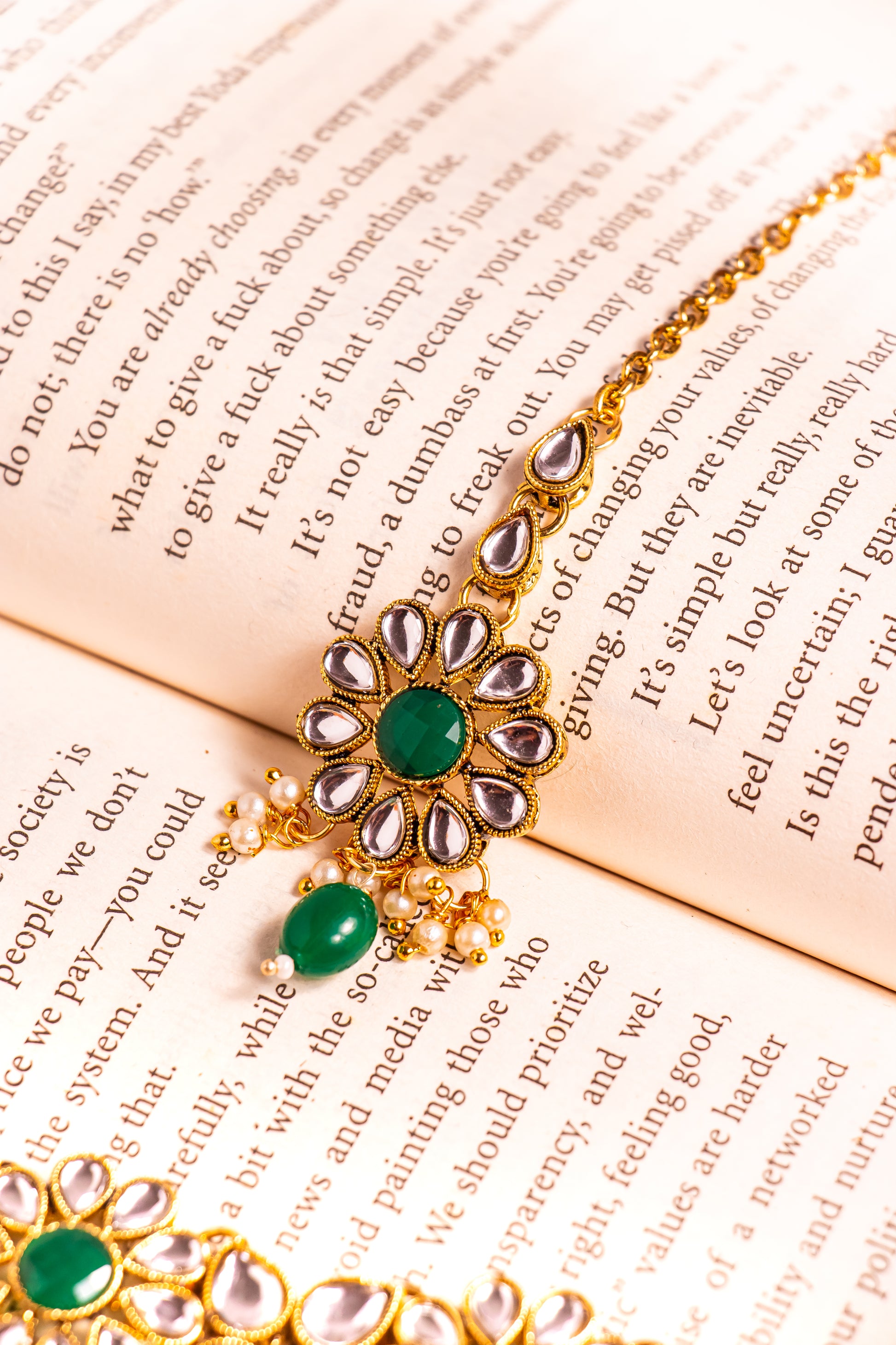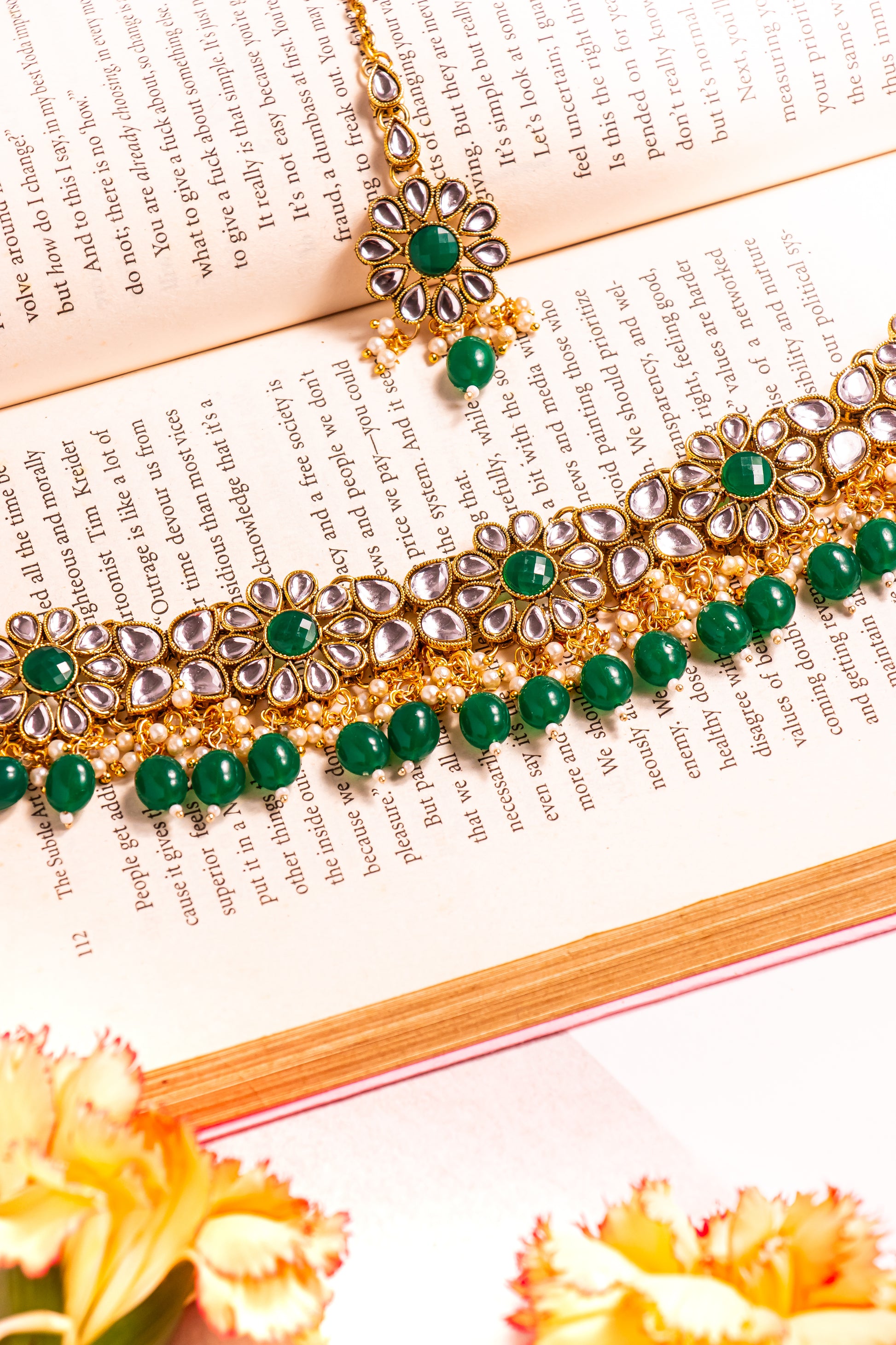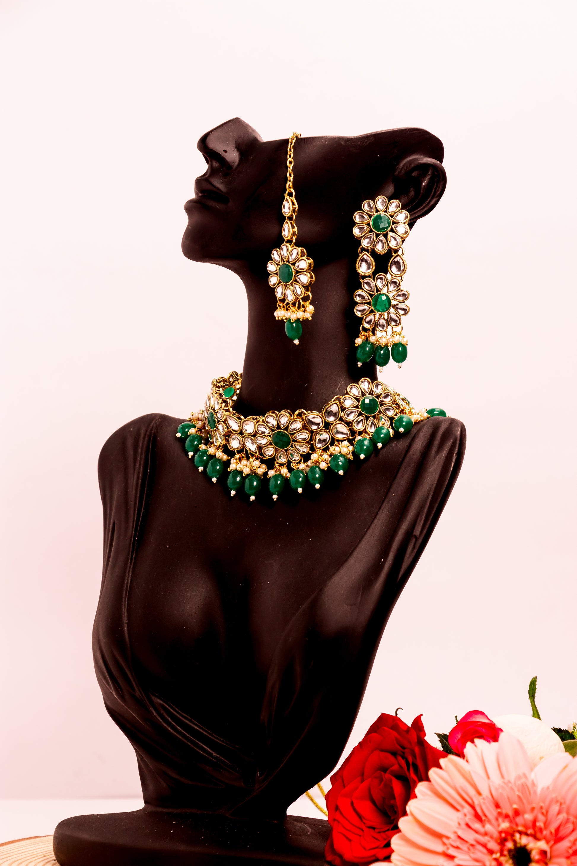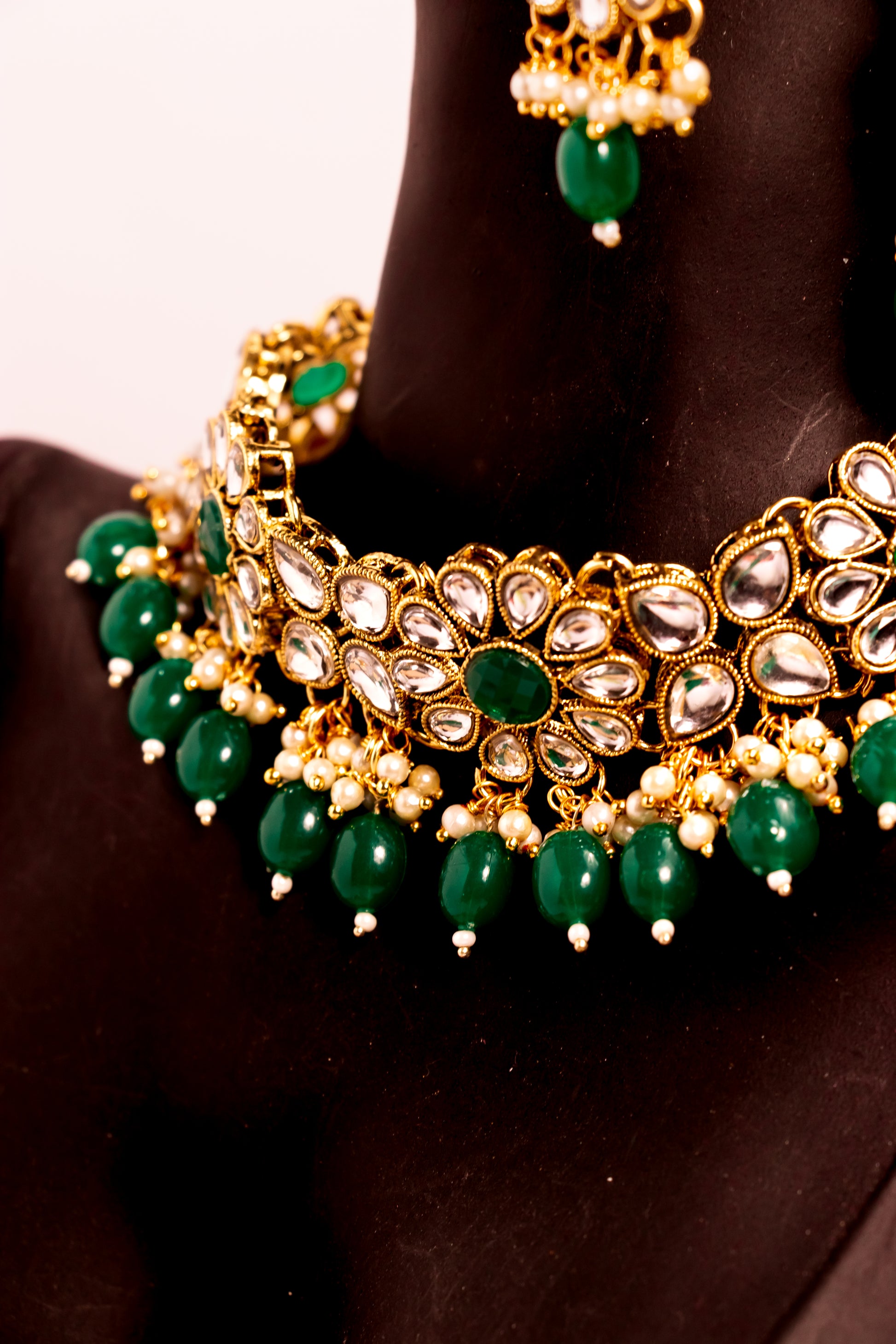Noor's Grace Green Kundan Necklace Set